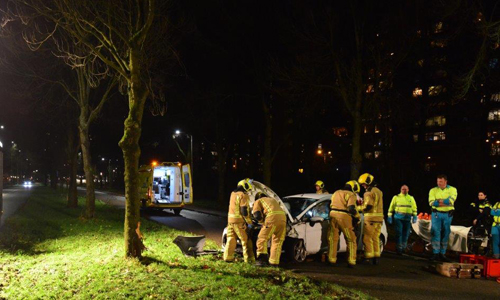 Zoetermeer – Op de Boerhaavelaan in Zoetermeer is vanavond een automobilist tegen een boom aan gereden nadat zij de macht over het stuur was verloren. Kort nadat dit gebeurde werden meerdere hulpdiensten opgeroepen. Ook de brandweer kwam ter plaatse omdat er mogelijk sprake was van een beknelling. De brandweer verwijderde het portier aan de bestuurderszijde zodat het slachtoffer onder begeleiding van het ambulancepersoon kon uitstappen. Nadat het ambulancepersoneel het slachtoffer had onderzocht werd zij naar het ziekenhuis gebracht.