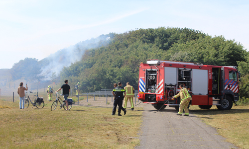 Ter Heijde – Dinsdagmiddag 4 juli is de brandweer gebeld na rookontwikkeling vanaf de Bloedberg, tussen strandopgangen Schelpenpad en Molenslag. Meteen zijn brandweereenheden van kazernes Monster, Den Haag-Scheveningen en Den Haag-Leidschenveen gealarmeerd. Brandweer Monster constateerde dat er een stuk van zo’n 8 bij 8 meter in de brand stond. Zij zijn meteen begonnen met blussen door middel van twee stralen hoge druk. De brand was snel onder controle, waardoor overige eenheden retour konden.