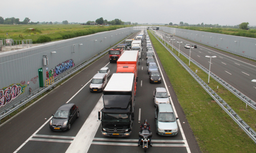Schiedam – Door een loshangende kabel in de A-buis van de Beneluxtunnel (rechterbuis richting Hoogvliet) staan er flinke files op de A20 en de A4. Diverse vrachtwagens zijn beschadigd geraakt door de loshangende kabel. De vrachtwagens staan momenteel op de vluchtstrook net buiten de tunnel.