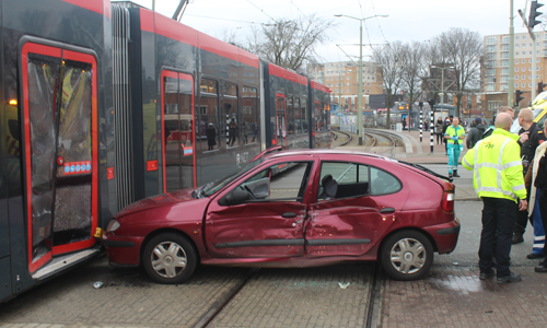Den Haag – De hulpdiensten werden zaterdagmiddag gealarmeerd voor een ongeval met letsel op de Wouwermanstraat in kruising met de Fruitweg in Den Haag. Ter plaatse had er een aanrijding plaatsgevonden tussen een personenauto en een tram. De gealarmeerde ambulancedienst heeft de inzittende van de personenauto gecontroleerd op eventueel letsel, onbekend of de inzittende ook vervoerd wordt naar het ziekenhuis. Het kruispunt was tijdens het ongeval volledig afgesloten voor het verkeer. Door de aanrijding reden tram 11 en 12 om. Hoe de aanrijding heeft kunnen gebeuren is niet bekend.