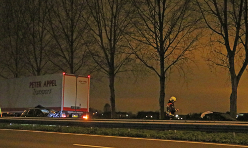 De auto klapte achterop een stilstaand voertuig op de vluchtstrook. De bestuurder van het achterop komend voertuig kwam hierbij om het leven. De hulpdiensten kwam ter plaatse en waren enige tijd bezig met het bevrijden van de slachtoffers. Nadat de vrouw was bevrijdt werd zij gereanimeerd. Hierna werd zij met spoed naar het ziekenhuis overgebracht. Voor de man kwam alle hulp te laat.