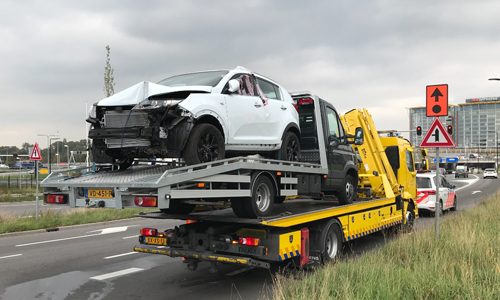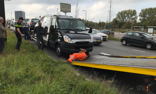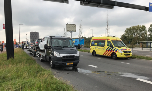 Vlaardingen / Schiedam – Doordat een vrachtwagen plotsing van rijbaan veranderde op Vijfsluizen moest een auto vol in de remmen. Een bestelwagen met oplegger zag dit weer net te laat en klapte achterop de auto. De vrachtwagen reed door misschien niet eens wetende wat er achter hem gebeurd was. De trekhaak van de auto had de radiotor van de bestelwagen lek gemaakt, hierdoor moest er een berger ter plaatse komen om de wagen (ook een berger met schade voertuig als lading) te bergen. Doordat er een rijbaan gestremd was zorgde dat voor de nodige verkeersdrukte vanuit Vlaardingen richting Schiedam. Een ambulance kwam met gepaste spoed ter plaatse maar er hoefde niemand mee naar het ziekenhuis.