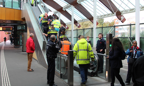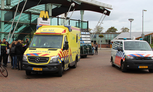Schiedam – Woensdagmorgen is een tiener van een ballustrade op het perron gevallen op metrostation Troelstralaan in Schiedam. Zijn klasgenoten zagen het voor hun ogen gebeuren en belde direct 112. Volgens omstanders was de knul over de reling van de overloop geklommen en hing boven het perron, waarna hij naar beneden viel. Hij is met onbekend letsel naar het ziekenhuis vervoerd.