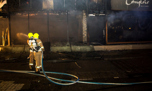 Rotterdam – Dinsdagavond is een zeer grote brand uitgebroken in Lounchebar Comptoir aan de Wijnhaven in Rotterdam. Omstanders hoorden meerdere explosies. Een groot deel van de gevel van de lounchebar is weggeslagen. De bewoners van bovenliggende woningen zijn geëvacueerd en opgevangen in restaurantboot “Vessel 11”. Binnen 4 minuten na de eerste brandmelding is opgeschaald naar Zeer Grote Brand. Later werd er door de brandweer verder opgeschaald naar GRIP1. Ook is met spoed een extra peloton met vier blusvoertuigen gealarmeerd. De brandweermannen waren nodig om alle woningen snel te kunnen ontruimen. Voor zover bekend zijn er geen gewonden gevallen. Over de oorzaak van explosie zal later meer duidelijk moeten worden.
