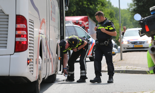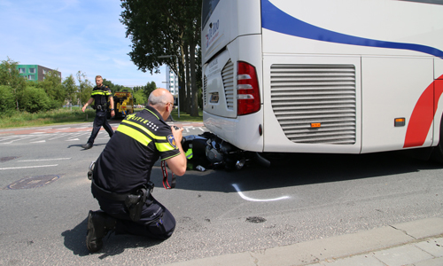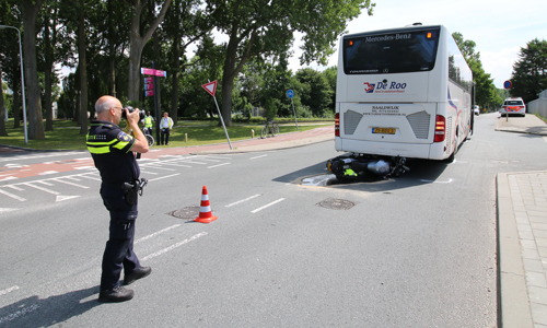 Delft – Op de Rotterdamseweg in Delft heeft woensdagmiddag 5 juli een aanrijding plaatsgevonden tussen een touringcar en een motor. De motorrijdster kwam door de aanrijding met haar motor terecht onder de touringcar. Omstanders hebben de motorrijdster veilig aan de kant gehaald. Ter plaatse gekomen ambulancepersoneel heeft het slachtoffer nagekeken, de motorrijdster is uiteindelijk met beenletsel vervoerd naar het ziekenhuis. De Rotterdamseweg blijft i.v.m. het onderzoek afgesloten. Bergingsbedrijf Vreugdenhil heeft de motor geborgen.