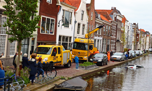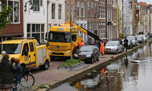 Gouda – De hulpdiensten werden vanmiddag omstreeks 10 over half 5 gealarmeerd voor een voertuig te water aan de Turfmarkt in Gouda. Tijdens het inparkeren van een personenauto ging het mis waarna een vader en zijn twee kinderen in het water belandde aan de gracht van de turfmarkt. Gelukkig kon men zelf uit het voertuig komen, waarna ze door verschillende omstanders naar de kant werden geholpen. Op de schrik na en natte kleding bleek er uiteindelijk van letsel geen sprake. Een bergingsbedrijf heeft het voertuig geborgen. Door het incident was de Turfmarkt tijdelijk afgesloten in de richting van de Lage Gouwe voor al het verkeer.