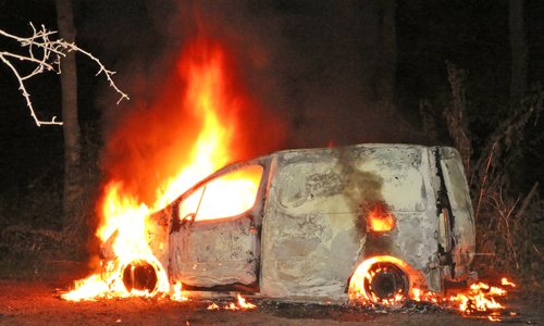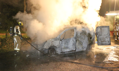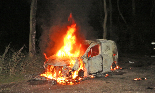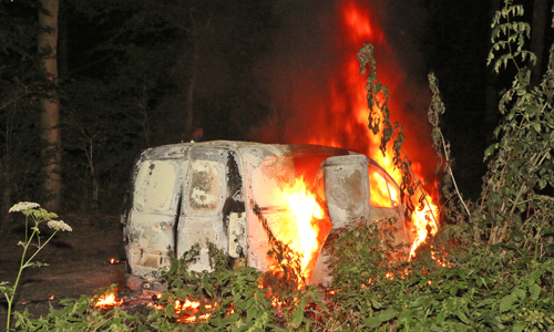 Delft – In het natuur- en recreatiegebied Delftse Hout is zondagnacht 6 augustus rond de klok van 03:00 een bestelwagen volledig uitgebrand. Doordat de plek waar de bestelwagen geparkeerd stond nogal afgelegen was is de brand pas vrij laat opgemerkt. De brandweer had het vuur echter snel onder controle. Door wie de brand is ontdekt is nog onduidelijk. Door een flinke knal is de voorruit van de bestelwagen enkele meters verder terecht gekomen. De politie staat nog voor een raadsel over de brandoorzaak. Aangezien het voertuig niet in een parkeervak geparkeerd stond is het mogelijk dat het hier om brandstichting gaat. De politie zal hier een onderzoek naar starten. Het voertuig is later opgehaald door een bergingsbedrijf.