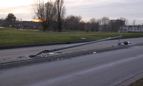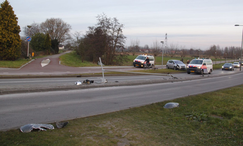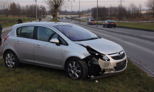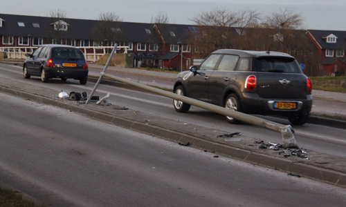 Schiedam – Op de -s-Gravelandseweg in Schiedam is vanmiddag een auto tegen een lantaarnpaal aangereden. Door nog onbekende oorzaak kwam de auto ter hoogte van Sveapark op de middenberm terecht en heeft hierbij een lantaarnpaal volledig omver gereden. Een ambulance is ter plaatse gekomen om een inzittende te controleren op mogelijk letsel. Voor zover bekend zijn er geen andere voertuigen bij het ongeluk betrokken geweest. De auto is uiteindelijk weggetakeld.