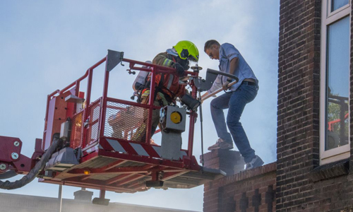 Vlaardingen – Woensdagavond hebben de hulpdiensten een grote oefening gehouden in de Cronjestraat in Vlaardingen. Politie, brandweer, ambulance en de gemeente deden mee aan de oefening. In een schuur achter een woning was brand ontstaan, waarna het vuur was overgeslagen naar meerdere woningen. De brandweer heeft meerdere mensen via o.a. de hoogwerker weten te redden. Het fictieve incident werd opgeschaald naar Zeer Grote Brand. Ten tijde van de oefening werd de doorgaande weg tijdelijk afgesloten voor het overige verkeer.