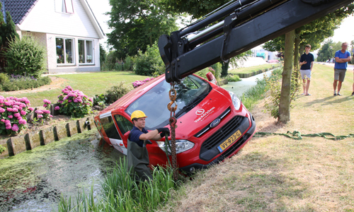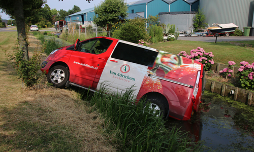 De Lier – Aan de Kreekweg in De Lier stond een bewoner raak te kijken toen hij zijn bestelbus niet meer op zijn oprit zag staan. De man was vergeten om de handrem erop te zetten. Hierdoor was het voertuig van de oprit afgerold en kwam vervolgens aan de overkant van de weg in de sloot terecht. Twee bergers moesten er aan te pas komen om het busje uit het water te halen.