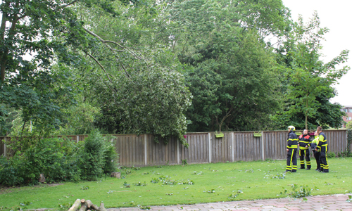 Monster – De brandweer werd dinsdagmiddag 6 juni gealarmeerd voor een stormschade-melding aan de Tuinlaan in Monster. Aldaar hing een tak gevaarlijk los aan een boom. Omdat de brandweer op dat moment niks kon betekenen heeft de brandweer de omgeving afgezet met afzetlint.