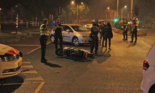 Den Haag – In de nacht van dinsdag op woensdag 6 september heeft er op de Driebergenstraat met de Soestdijksekade in Den Haag een aanrijding plaatsgevonden tussen een scooter en een politie voertuig. Hierbij raakte de twee opzittenden op de scooter licht gewond.