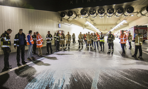 In de tunnel werden ook de blusinstallaties getest en werd er met water en schuim gespoten. Op deze manier hebben alle mogelijk betrokken brandweermensen van de nabijgelegen kazernes (Schiedam, Vlaardingen en Hoogvliet) de tunnelprocedure een extra keer meegemaakt. Vanwege de recente berichten over de tunnelveiligheid heeft Rijkswaterstaat deze avonden beschikbaar gesteld aan de brandweer voor extra oefeningen.