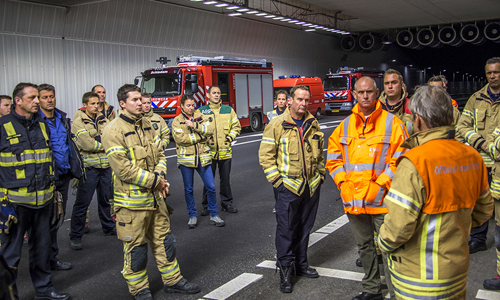 Woensdagavond werd hiervoor de tunnelbuis van Delft richting Hoogvliet afgesloten zodat de brandweermannen konden oefenen. Na een rondleiding in het complex (die meerdere ingangen aan de zijkant heeft zodat hulpdiensten meteen ter hoogte van het incident de tunnel in kunnen komen) werd de route gereden om op de snelweg zelf te komen.