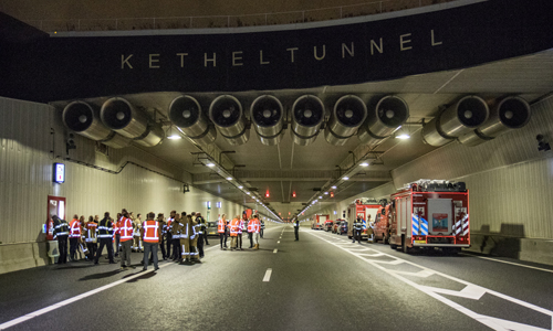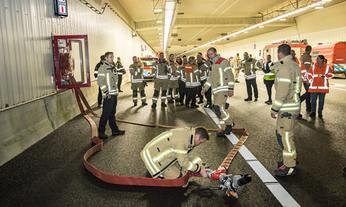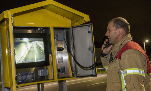 Eenmaal op de A4 werd instructie gegeven hoe men het snelste overzicht kan krijgen van een calamiteit. Hiervoor staat bij beide uitgangen van de tunnel een geel kastje met daarin een telefoon en een beeldscherm. Met de telefoon kan contact worden gelegd met de tunnelbeheerder die beelden van elke camera in en nabij de tunnel kan tonen op het scherm. Zo hebben de hulpdiensten nog voor het betreden van de tunnel een duidelijk overzicht wat er aan de hand is binnen en kan ook de dichtstbijzijnde toegangsdeur bepaald worden.