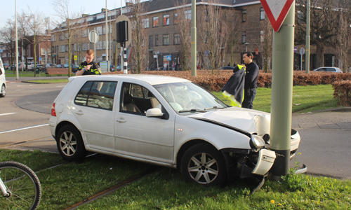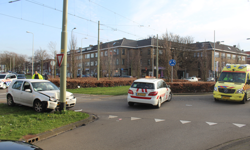 Den Haag – Zaterdagavond heeft er een eenzijdig ongeval plaatsgevonden op de rotonde aan de De La Reyweg in Den Haag. De automobilist is na de aanrijding uit de auto gestapt en weggerend. Op de Scheepersstraat hield de politie de bestuurder aan. Hij werkte niet mee en moest met gepast geweld worden aangehouden. Een ambulance kwam ter plaatse en voerde de bestuurder met spoed af naar het ziekenhuis. De politie reed mee met de ambulance. De man gaat voor bloedafname mee, aangezien er een groot vermoeden is dat de man heeft gedronken. In de auto trof de politie een fles aan. Vermoedelijk alcohol. De auto is door de politie berger afgesleept. Tram 6 was ten tijde van het incident gestremd in beide richtingen en reed om.