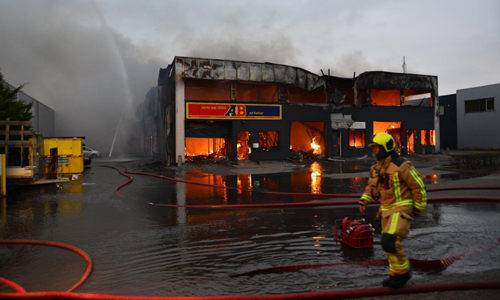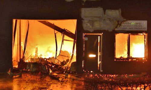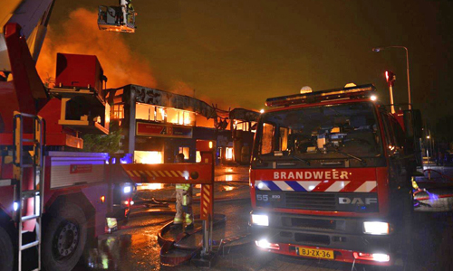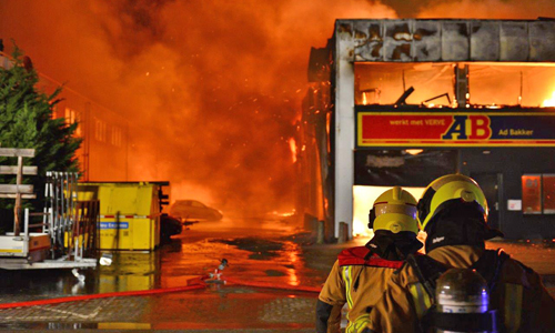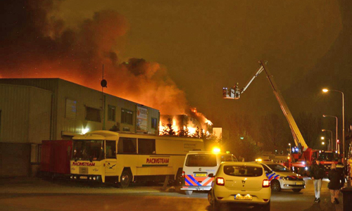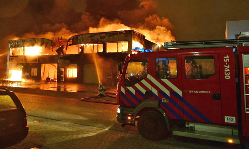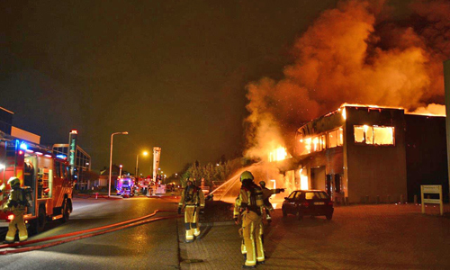 Pijnacker – Vanmorgen vroeg werden de hulpdiensten gealarmeerd voor een brand in een bedrijfspand aan de Ambachtsweg in Pijnacker. De melder gaf aan dat de vlammen uit het dak sloegen. Al snel was duidelijk dat het een serieuze brand was en werd er snel opgeschaald naar ‘Zeer grote brand’. De brandweer was uren lang bezig met blussen. Het gehele gebouw waarin elf bedrijven waren gevestigd brandde volledig af. Burgemeester Francisca Ravestein van de gemeente Pijnacker-Nootdorp kwam ter plaatse om de ondernemers een hart onder de riem te steken. De brand werd rond 06:15 ontdekt en om 11:00 kon de brandweer het sein ‘Brand meester’ geven.