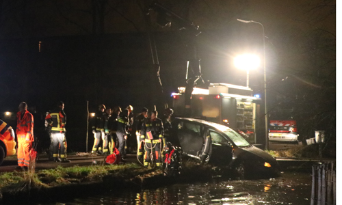 Gouda – De hulpdiensten werden vannacht omstreeks kwart voor 3 gealarmeerd voor een voertuig te water aan de Sportlaan in Gouda. Ambulance en brandweer spoedde zich al snel naar deze locatie, maar kregen onderweg al te horen dat het incident zich iets verderop afspeelde, namelijk aan de Voorwillenseweg in Gouda. Ter plaatse bleek inzittende al uit het water te zijn en aan te zijn gehouden. Enkele honderden meters verderop reed toevallig een surveillance-eenheid welke besloot hem aan een controle te onderwerpen, waarop die besloot met een hoge snelheid door te rijden. Door verschillende hoogten in het wegdek en de zachte berm kwam die vervolgens in het water terecht.  Toch werd er besloten alsnog het water in te gaan met de duikers van Gouda, de duikers van Alphen aan den Rijn waren al afgemeld.  Men zocht hierbij niet alleen in / om het voertuig, maar maakte ook zoekslagen in de omgeving van de betreffende sloot. Het hulpverleningsvoertuig van de brandweer heeft de personenauto uit het water gehaald. Na nog een korte controle door de politie naar waar de auto schade had gemaakt. Was uiteindelijk weer de rust teruggekeerd.