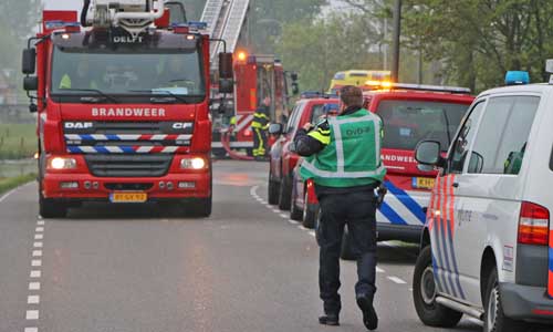 Maasland – Zondagochtend 7 mei werden de tankautospuiten van de kazerne’s Maasland en Schipluiden, de hoogwerker van kazerne Delft en de OvD (Officier van Dienst) uit Rijswijk gealarmeerd voor een gebouwbrand op de Oostgaag in Maasland. Bij aankomst van brandweer Maasland bleek er een flinke brand te woedde in een schuur van 20 bij 30 meter. Mede daarom schaalde de brandweer op naar ‘Middelbrand’. De hoogwerker van Delft is kort opgesteld en heeft de situatie van bovenaf bekeken. Omdat er mogelijk sprake zou zijn van asbest is de Oostgaag door de politie afgesloten. De AGS (Adviseur Gevaarlijke Stoffen) is ter plaatse gekomen en heeft metingen verricht. De brandweer is nog enige tijd bezig met bluswerkzaamheden.