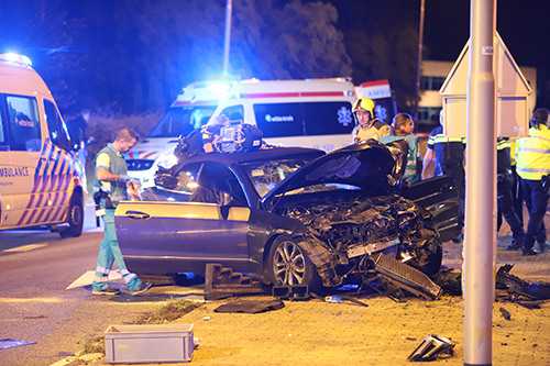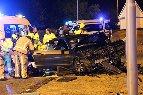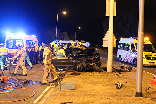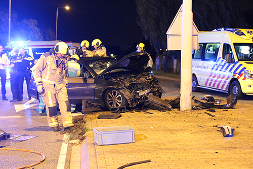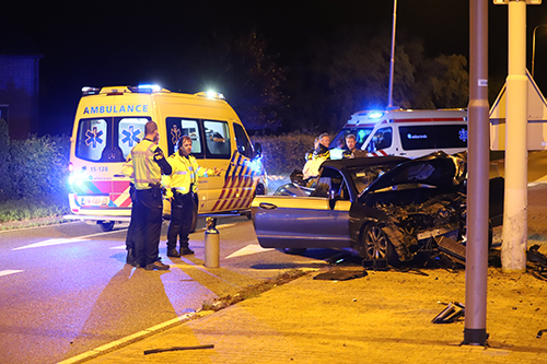 Honselersdijk – Op de N213 Burgemeester Elsenweg in Honselersdijk is een auto rond 23:00 uur frontaal op een lantaarnpaal gebotst. De lantaarnpaal stond op een verhoogde middenberm. De auto raakte door nog onbekende oorzaak de vangrail. De bestuurder probeerde de auto onder controle te krijgen, maar na het raken van de berm verloor de automobilist de macht over het stuur en kwam tegen de lantaarnpaal tot stilstand. Naast drie ambulances kwam ook de brandweer ter plaatse. Drie inzittenden werden door de hulpdiensten uit de auto gehaald. De drie inzittende raakte gewond, waarvan één zwaargewond. Het ambulancepersoneel stabiliseerde de slachtoffers, welke hierna naar het ziekenhuis werden vervoerd. De N213 werd door het ongeval in beide richtingen afgesloten.
