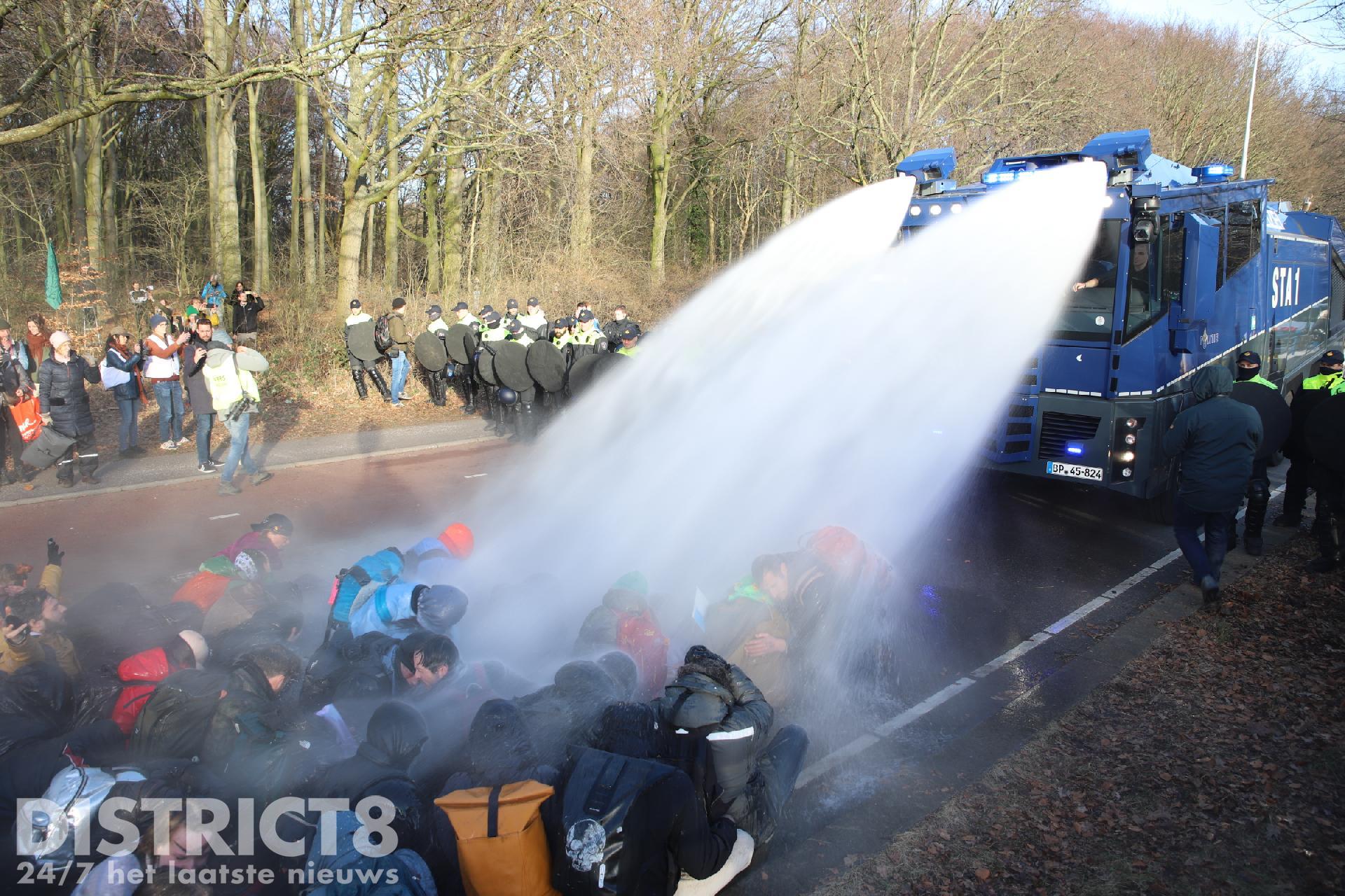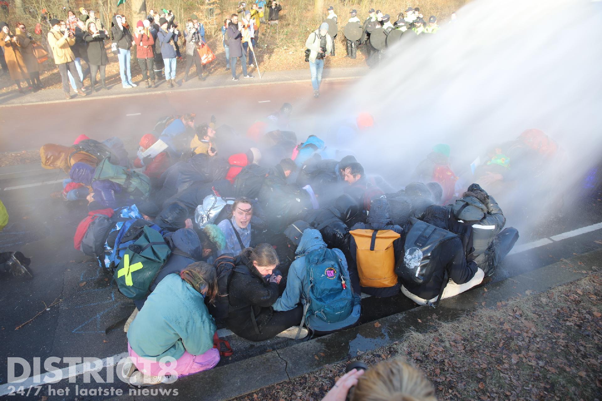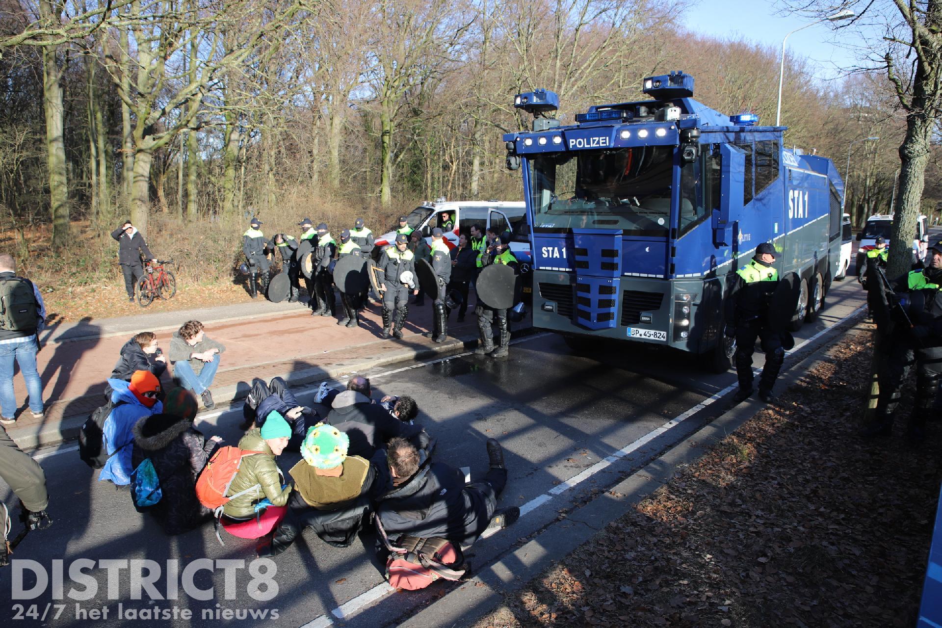 Omstreeks 17:00 waren er echter nog honderden demonstranten op de weg, de politie heeft deze in eerste instantie gevorderd weg te gaan. Ook is er toen gewaarschuwd voor het gebruik van geweld, echter bleven vele demonstranten nog zitten. Hierop zijn de Duitse waterwerpers ingezet, echter had dit geen gewenst resultaat. Hierop zijn agenten begonnen met het verwijderen van de demonstranten.
