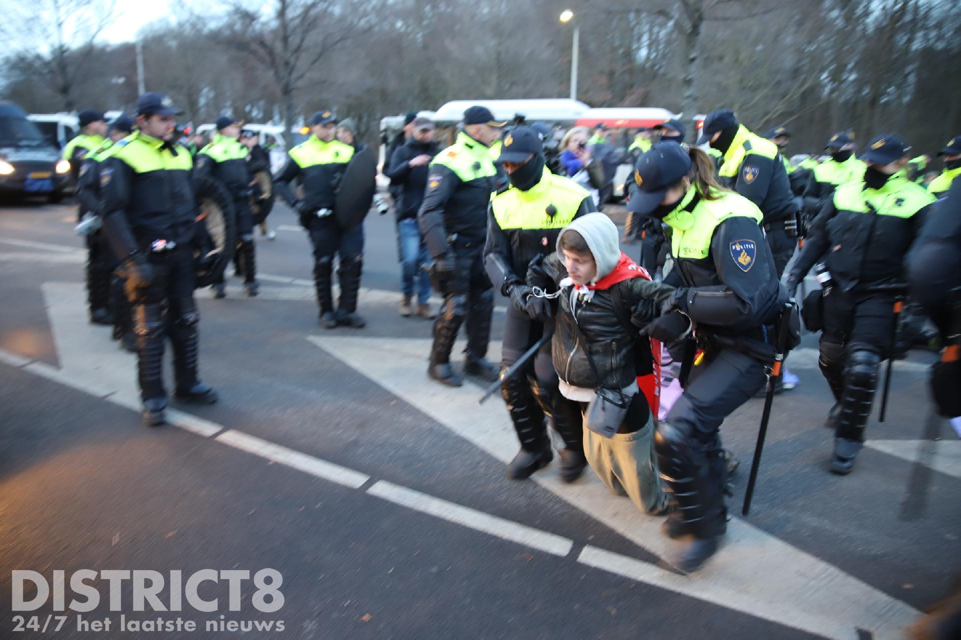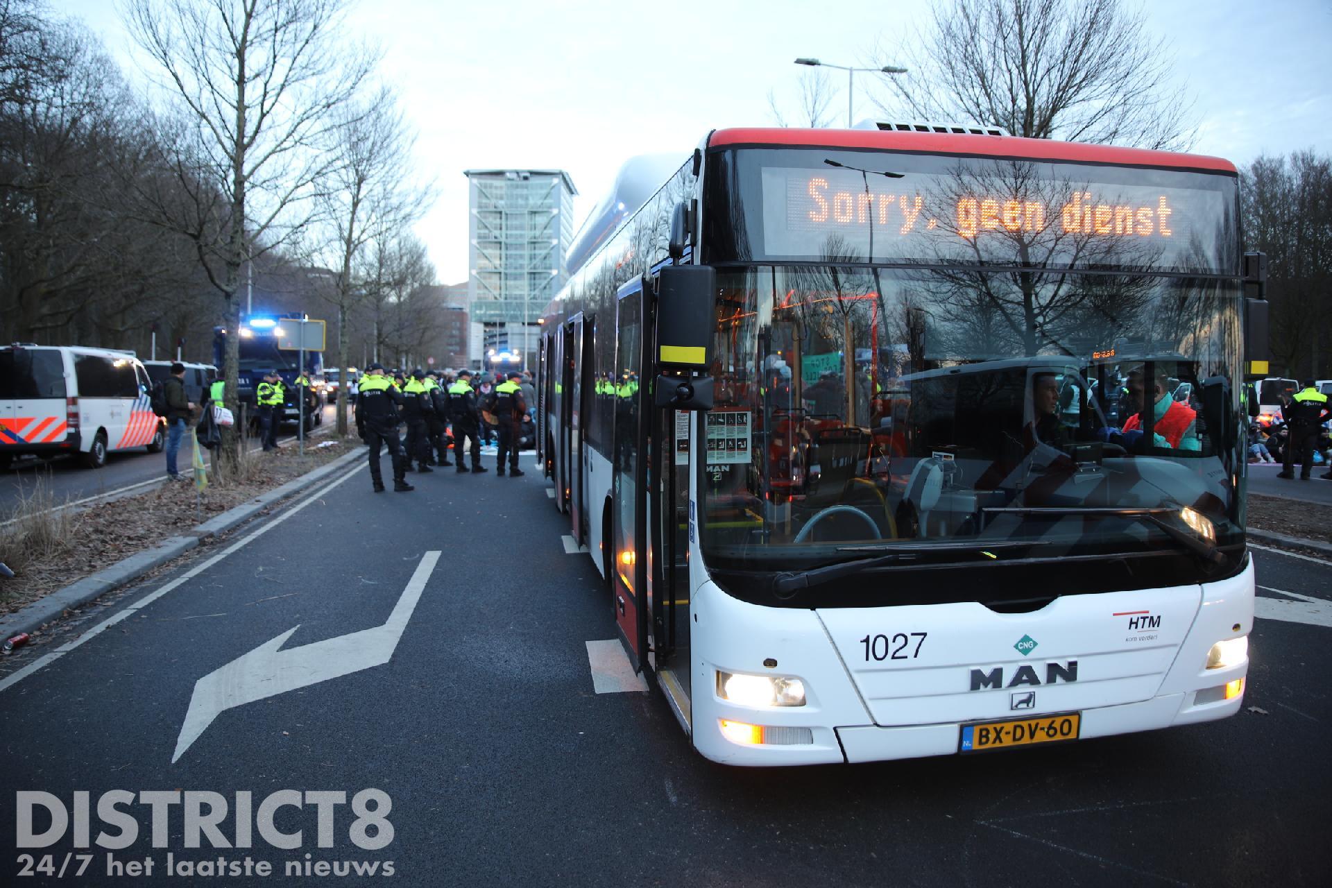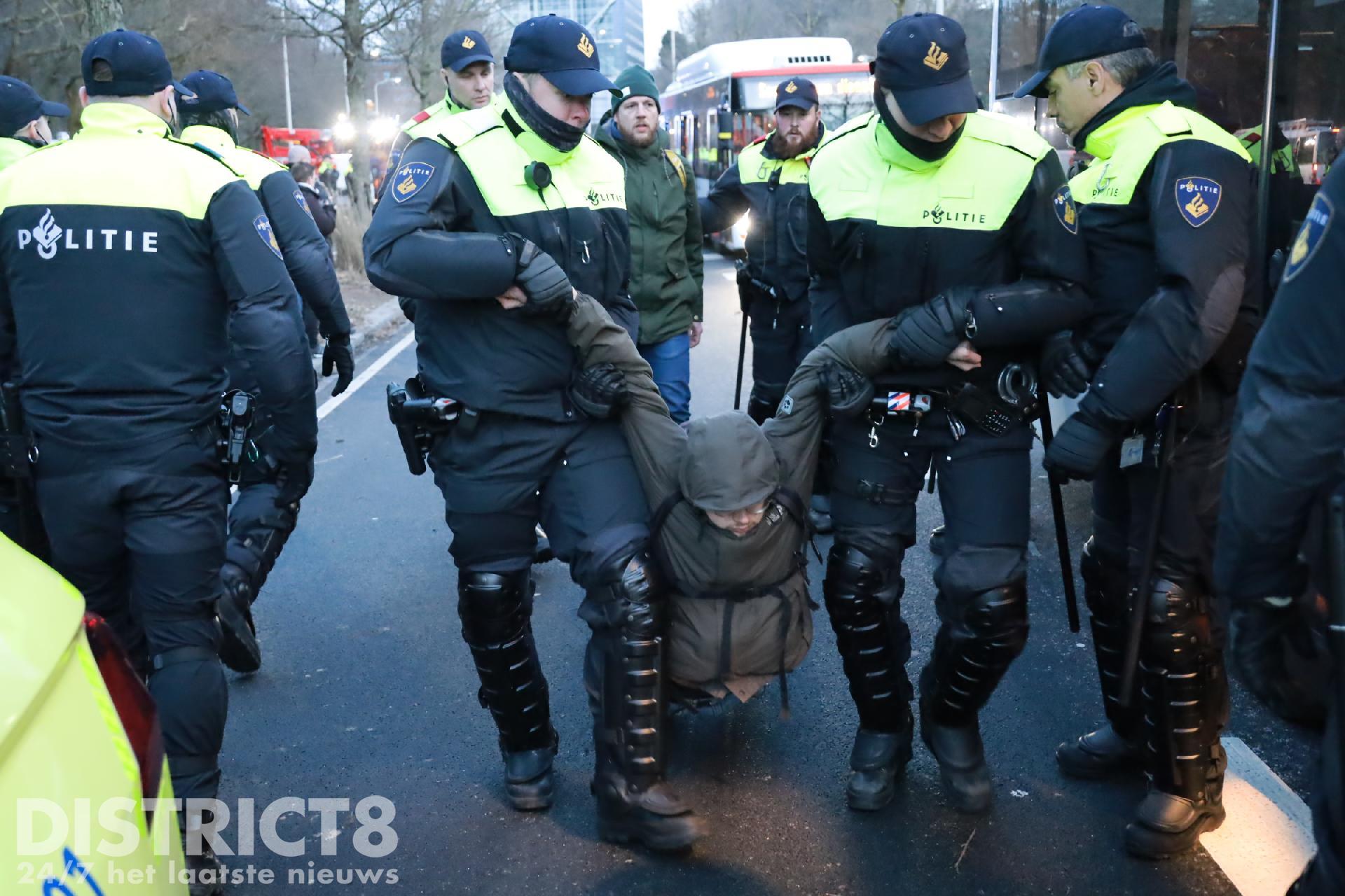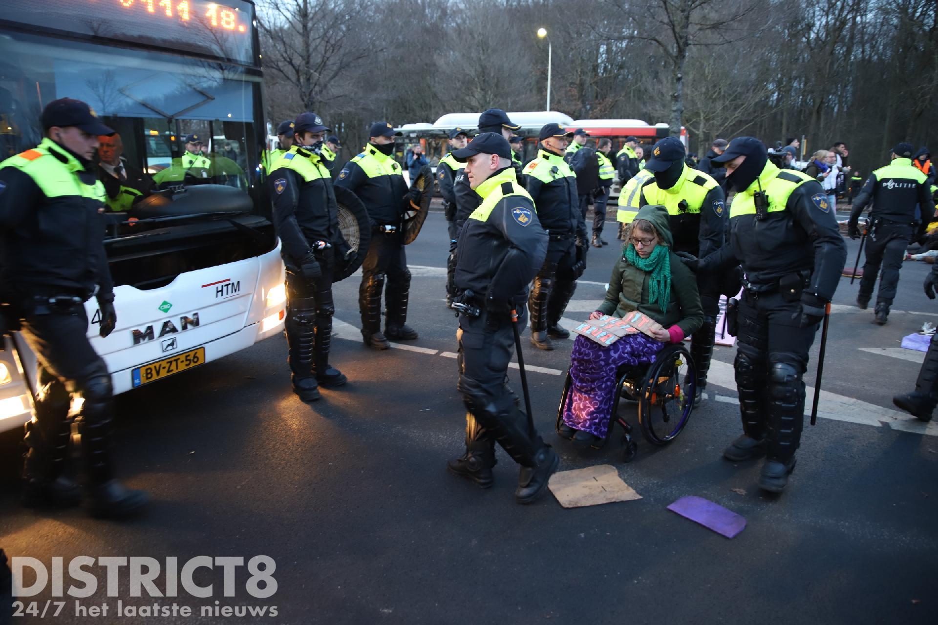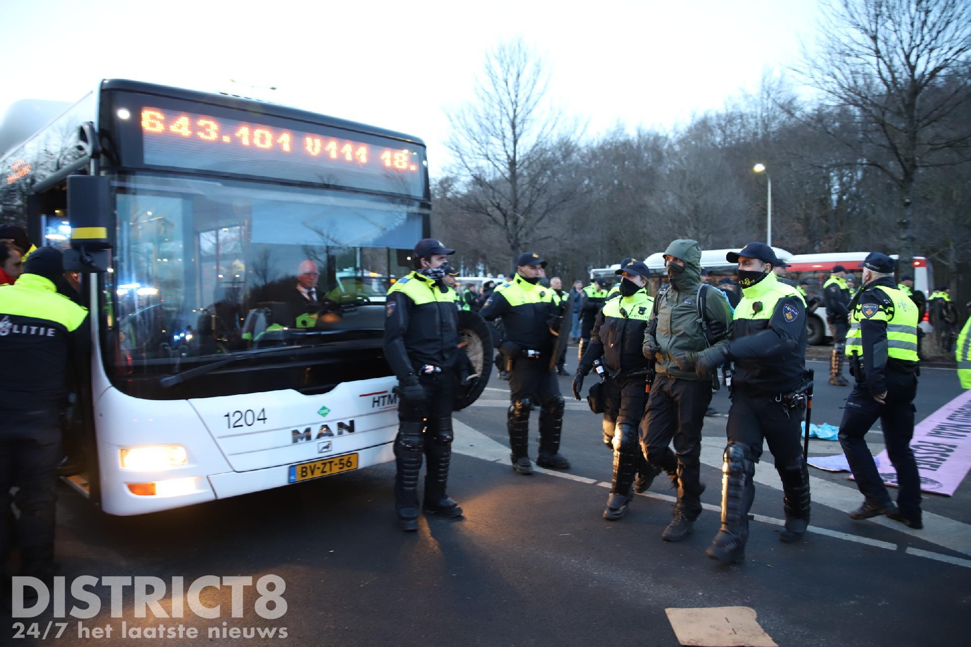 Uiteindelijk kreeg de politie de overgebleven demonstranten ingesloten op de weg, stadsbussen van de HTM zijn hierna ter plaatse gekomen. Agenten hebben de demonstranten die niet weg waren uiteindelijk naar de gereedstaande stadsbussen gebracht, de éen wat makkelijker dan de ander.