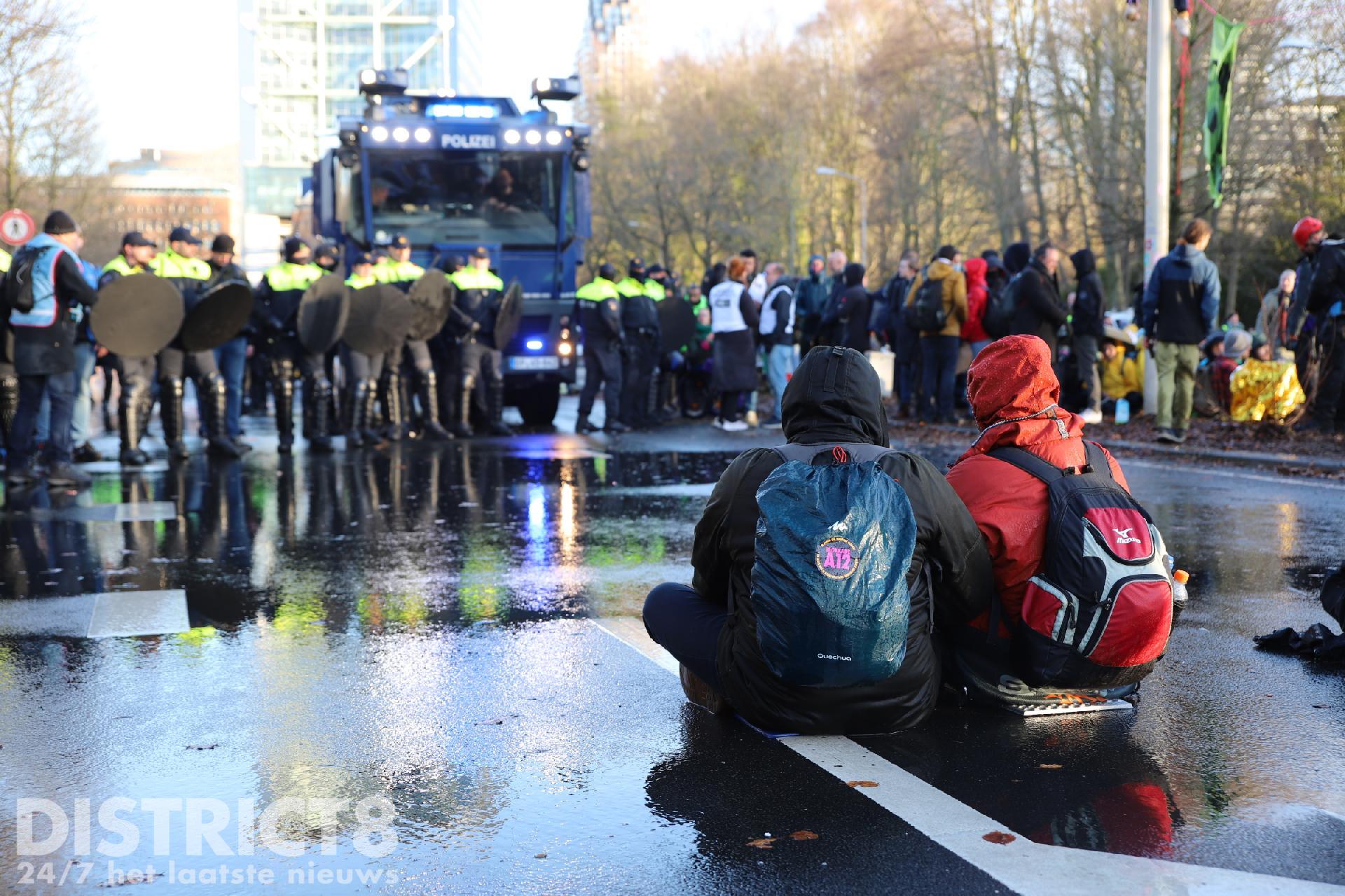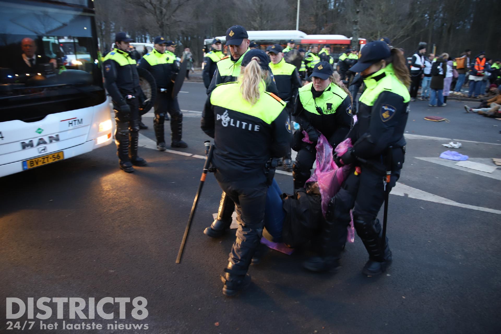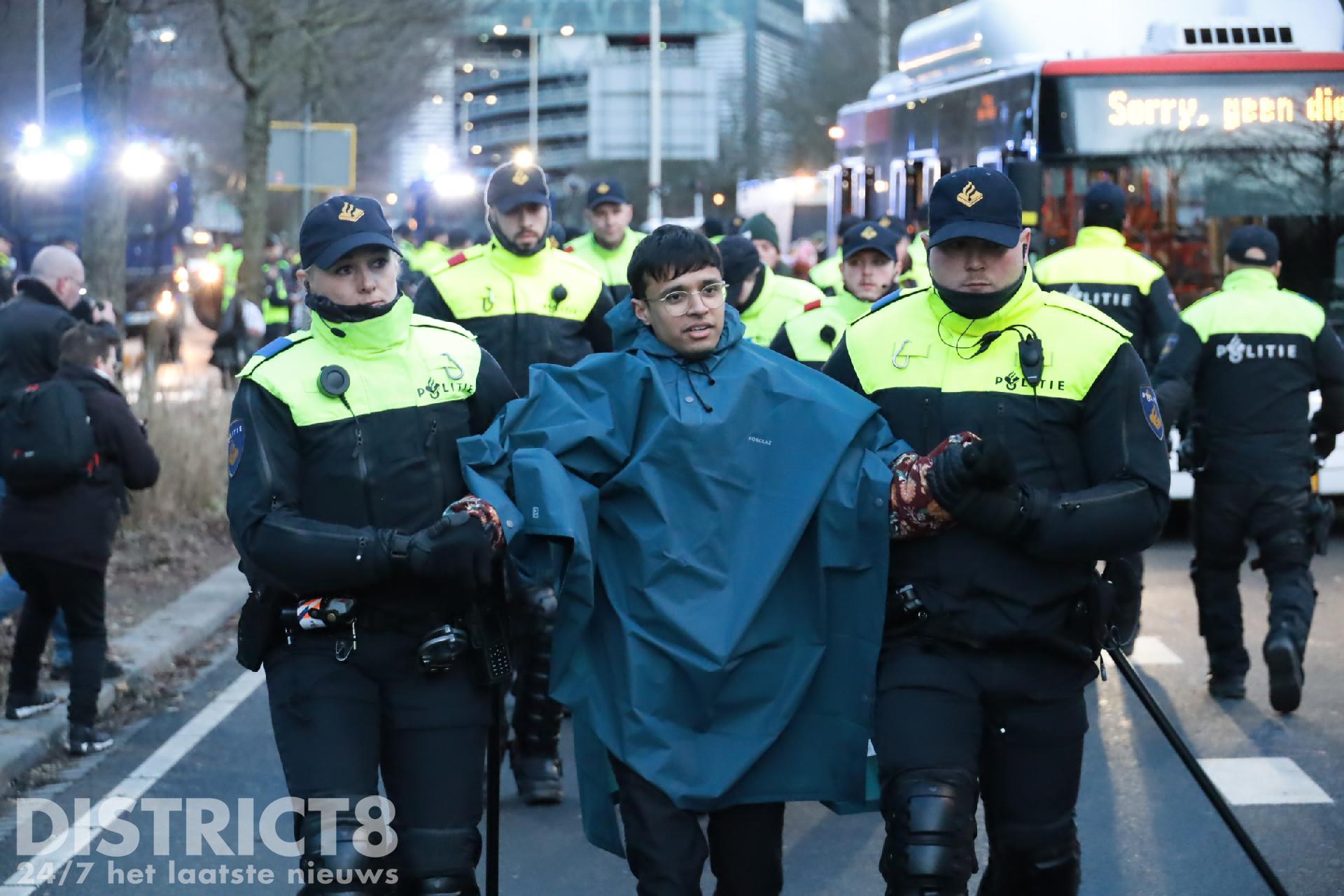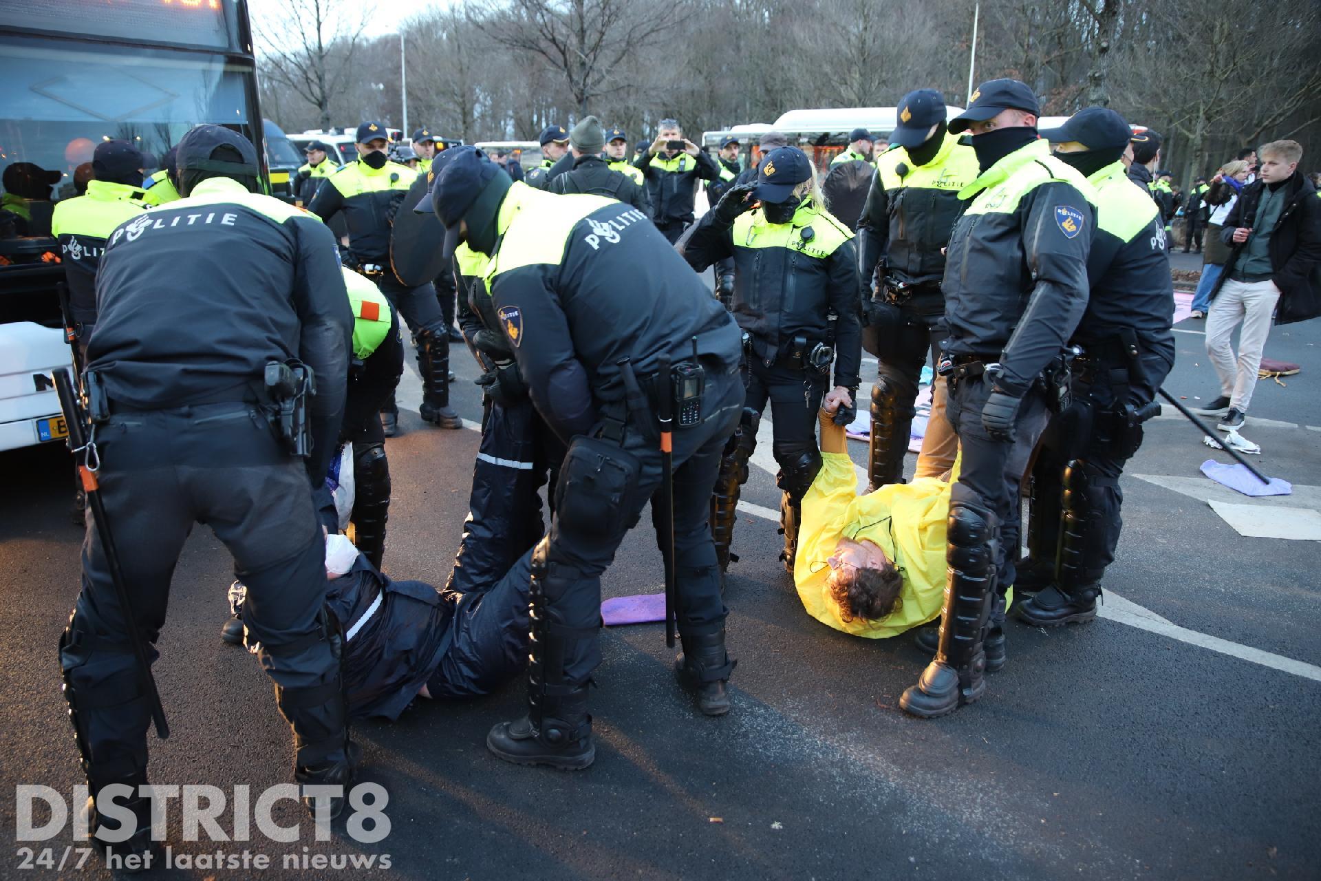 Uiteindelijk kreeg de politie de overgebleven demonstranten ingesloten op de weg, stadsbussen van de HTM zijn hierna ter plaatse gekomen. Agenten hebben de demonstranten die niet weg waren uiteindelijk naar de gereedstaande stadsbussen gebracht, de éen wat makkelijker dan de ander.