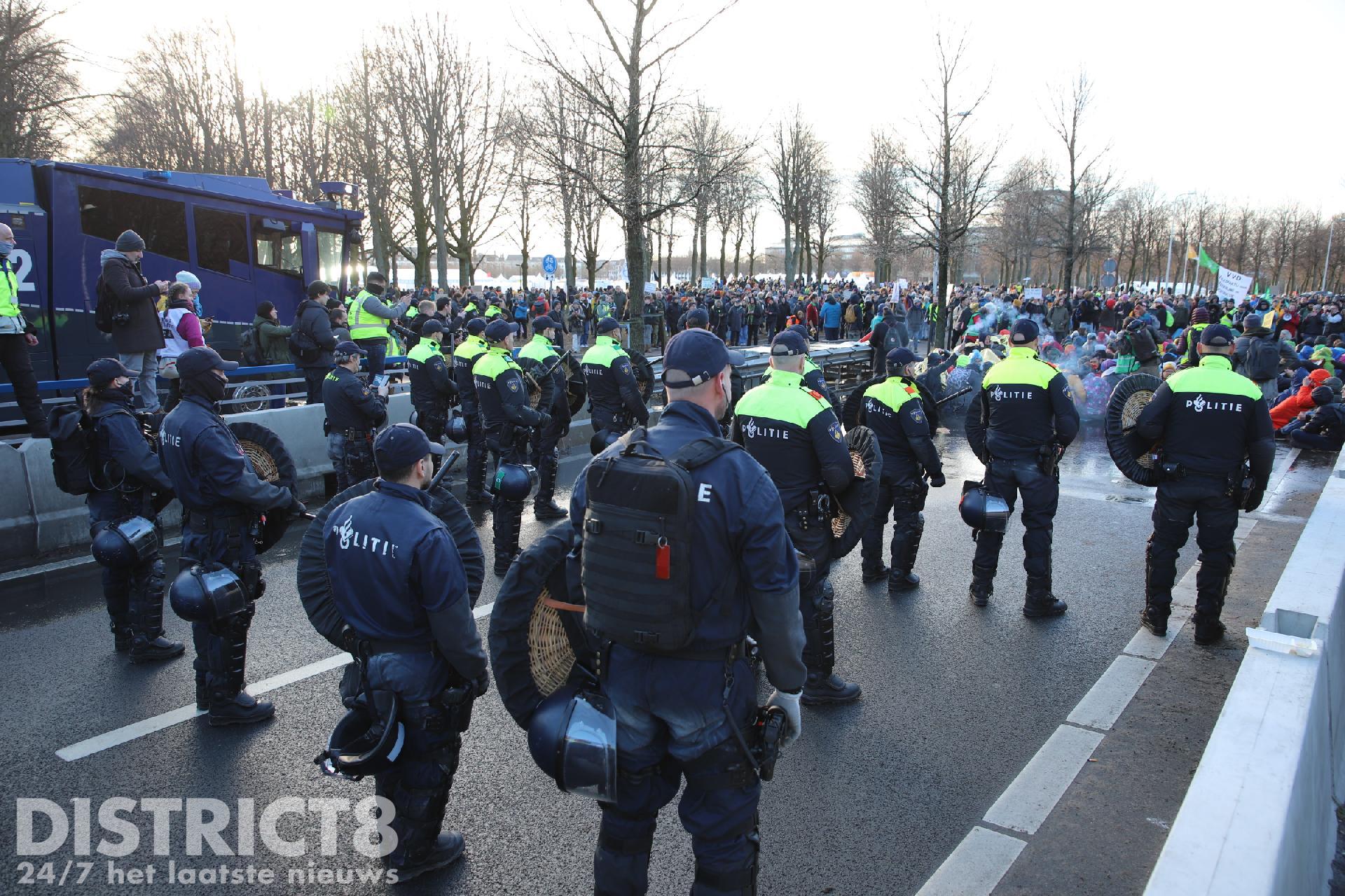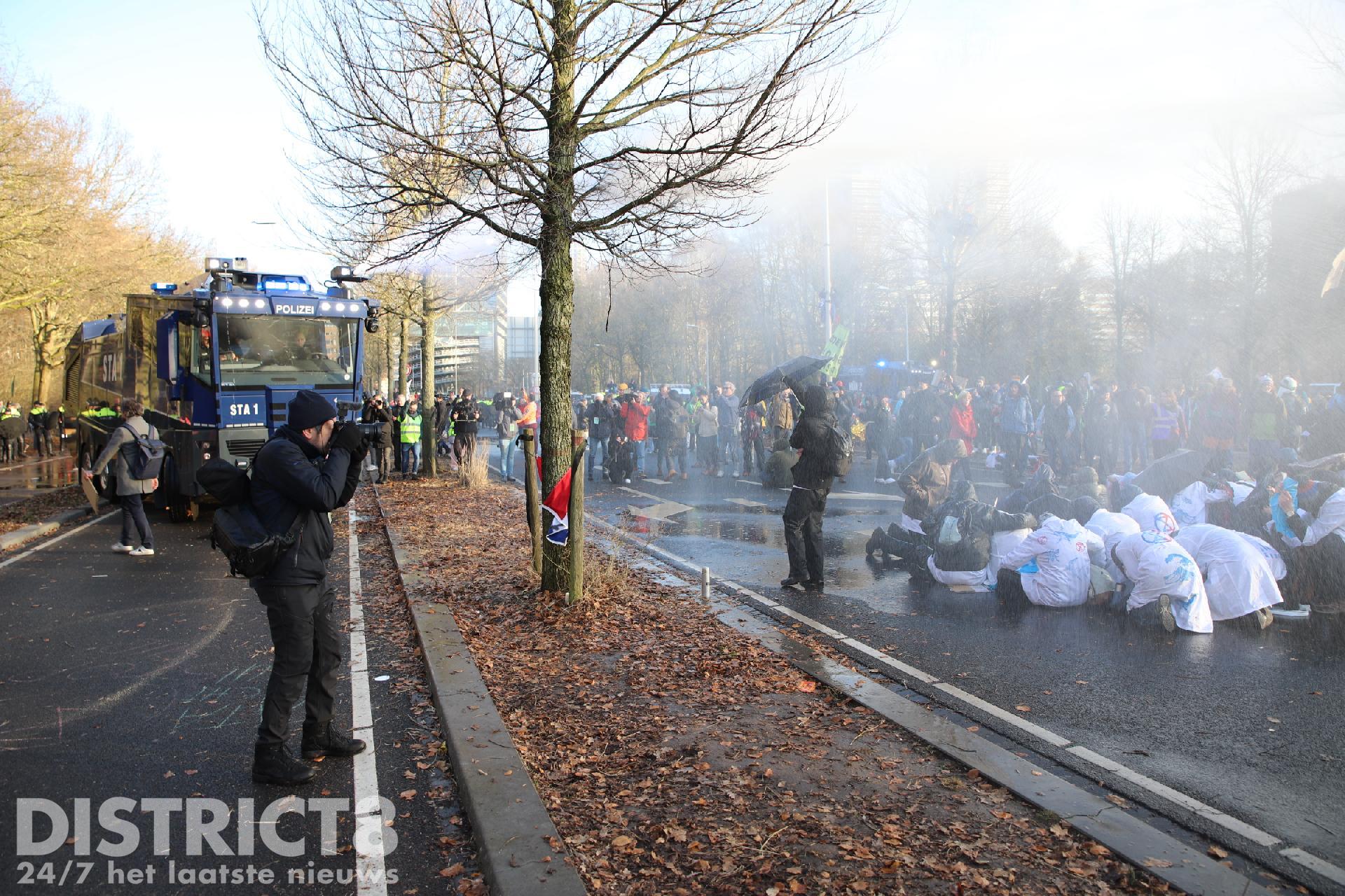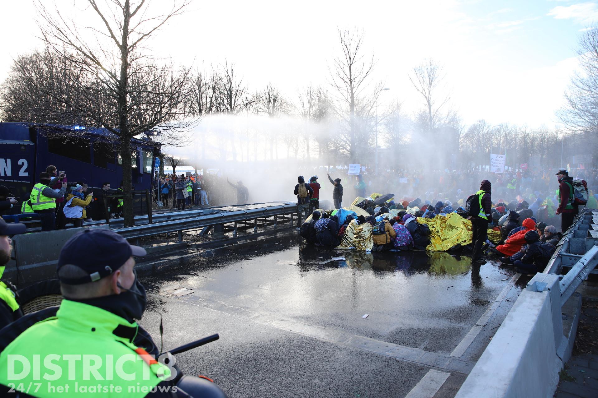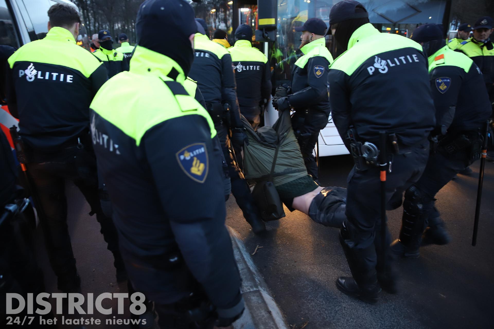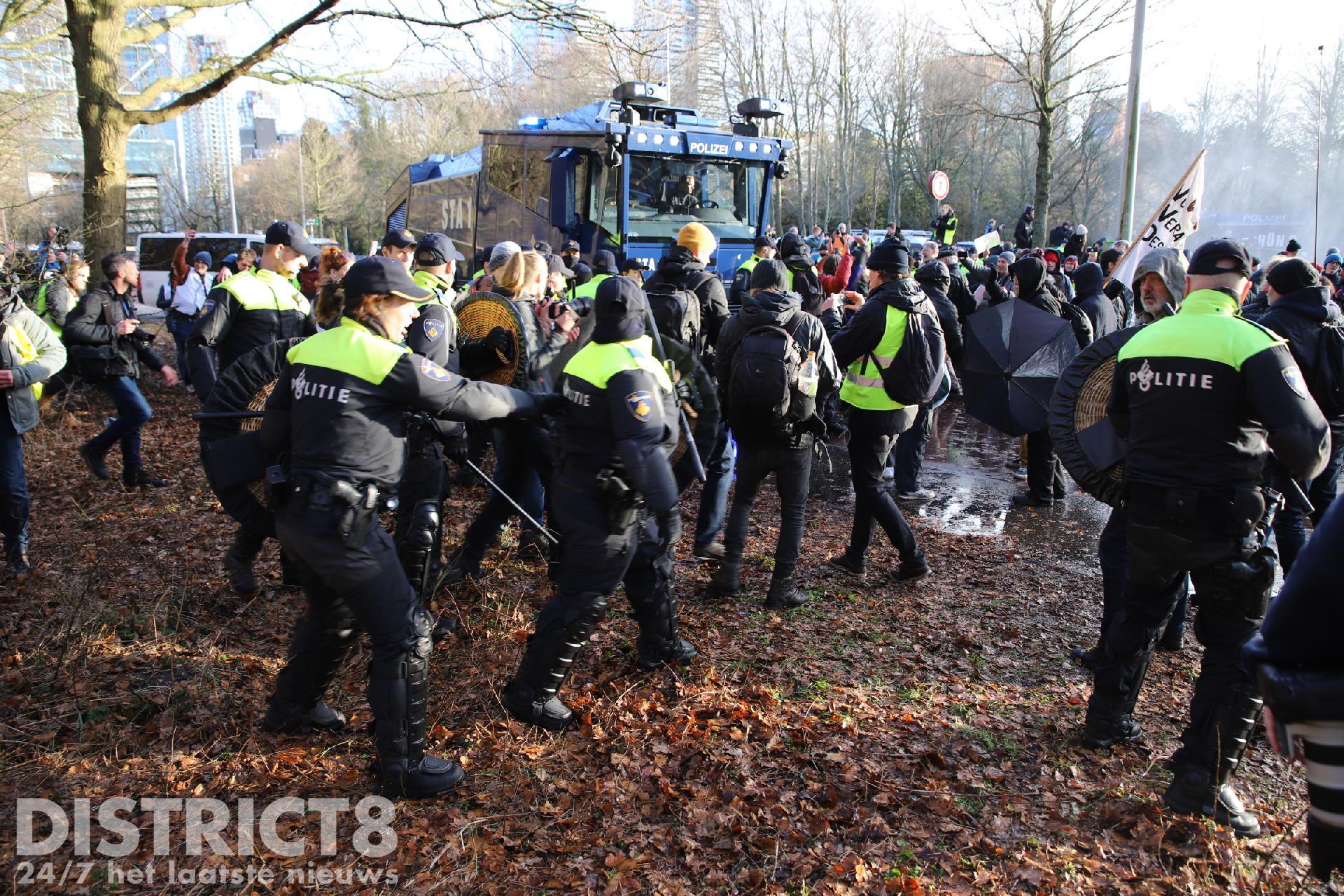 Uiteindelijk kreeg de politie de overgebleven demonstranten ingesloten op de weg, stadsbussen van de HTM zijn hierna ter plaatse gekomen. Agenten hebben de demonstranten die niet weg waren uiteindelijk naar de gereedstaande stadsbussen gebracht, de éen wat makkelijker dan de ander.