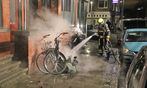 Den Haag – De brandweer werd in de nacht van vrijdag op zaterdag opgeroepen voor een scooter die in brand stond aan de Loudonstraat in Den Haag. Al snel bleek de scooter tegen een woning aan te staan en kwamen er meters hoge vlammen van de scooter af. Hierop schaalde de brandweer gelijk op naar gebouwbrand. De brandweer kwam snel ter plaatse en kon de brand snel blussen. Een andere scooter, een auto en de woning nabij de brand raakte beschadigd. De brandweer heeft in de woning nog metingen gedaan maar hier was gelukkig geen sprake van brand. Meerdere omwonende schrokken wakker van de flinke vlammen. De politie heeft de plek van de brand afgezet voor onderzoek.