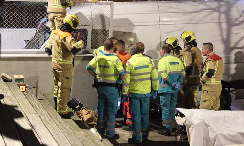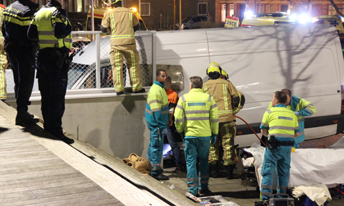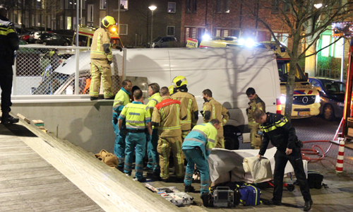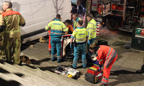 Den Haag – Een pakketbezorger donderdagavond klem komen te zitten tussen zijn busje en een muur. Dit gebeurde op de Wolweversgaarde in Den Haag. De hulpdiensten werden massaal gealarmeerd. Toen de hulpdiensten ter plaatse kwamen werd duidelijk dat de man met zijn arm vast zat tussen zijn deur en een muurtje bij de ingang van een garage. Het slachtoffer bleek wel aanspreekbaar te zijn. Naast de ambulance, politie en de brandweer werd ook het Mobiel Medisch Team(MMT) uit Rotterdam gealarmeerd. Nadat het slachtoffer was nagekeken door het ambulancepersoneel en de arts van het MMT werd besloten om doormiddel van de spreider van de brandweer de bus deels van het muurtje af te duwen. Hierdoor kwam de arm van het slachtoffer vrij. Volgens het slachtoffer viel de pijn mee. Voor de zekerheid werd het slachtoffer wel meegenomen naar het ziekenhuis.