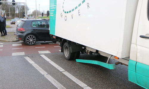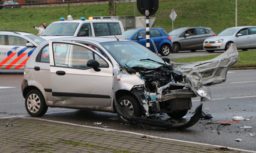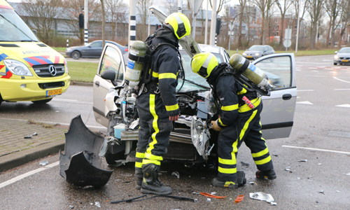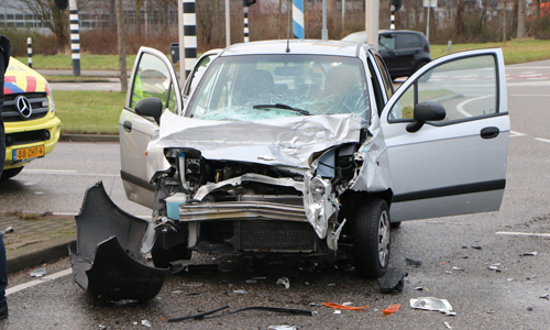 Delft – Zondagmiddag 8 januari heeft er een ongeval plaatsgevonden op de Oostpoortweg in Delft, aldaar was een auto tegen de zijkant van een vrachtauto gereden. Bij het ongeval raakte twee personen gewond, beide zaten ze in de personenauto. Door de klap begon de auto te roken, de brandweer kwam hiervoor ter plaatse. Nadat de accu was losgekoppeld kon de brandweer retour. Een bergingsbedrijf kwam ter plaatse om het voertuig mee te nemen. Zoals op de foto’s is te zien, kunnen we er vanuit gaan dat het voertuig total-loss zal worden verklaard. De twee personen die gewond waren geraakt, zijn beide vervoerd naar het ziekenhuis.