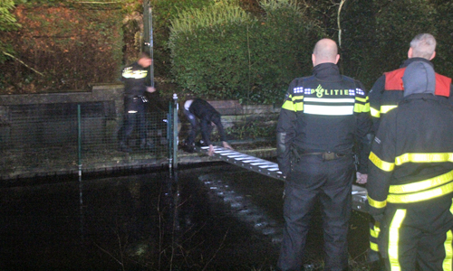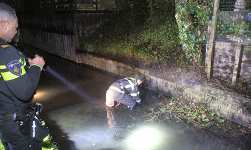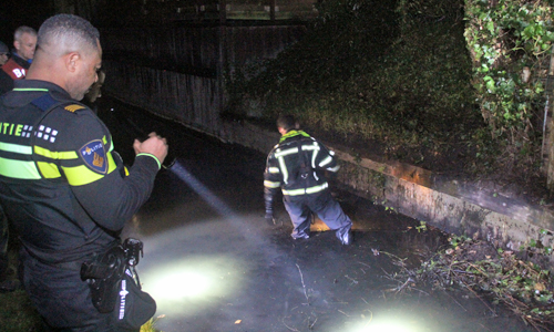 Rijswijk – De politie heeft na een achtervolging twee verdachten kunnen aanhouden na een inbraak in een woning aan de Doctor Augustijnlaan in Rijswijk. Agenten die na een melding bij de woning aankwamen werden geconfronteerd met vier mannen die uit het huis vluchtte. Meteen hebben deze agenten de achtervolging ingezet. Één van de agenten kwam samen met een verdachte in de sloot achter de woning tot een worsteling. Hierbij is de agent zijn portofoon verloren. Nadat de agent assistentie van collega’s verzocht zijn vanuit de hele regio politie-eenheden ter plaatse gegaan, waaronder de hondenbrigade. Samen met assisterende collega’s is de man overmeesterd, waarna hij deed alsof hij onwel werd. Ambulancepersoneel is met spoed ter plaatse gekomen om de inbreker te onderzoeken, maar er bleek niets aan de hand. Hij kon dus al gauw met handboeien de politieauto in. Twee huisblokken verder was het de politie inmiddels gelukt ook een tweede verdachte aan te houden in een achtertuin. Omdat de bewoners van deze woning niet thuis waren heeft de brandweer geassisteerd door middel van een ladder om de verdachte over de sloot te krijgen. Hierna is ook hij overgebracht naar bureau Rijswijk. De brandweer heeft geprobeerd de verloren portofoon te vinden, helaas zonder resultaat. In de woning waar de vier mannen is een ravage aangetroffen.