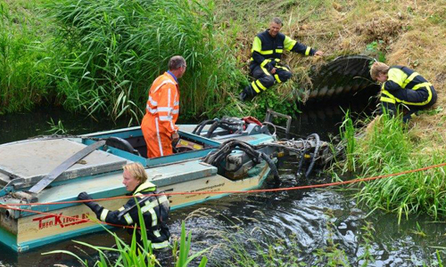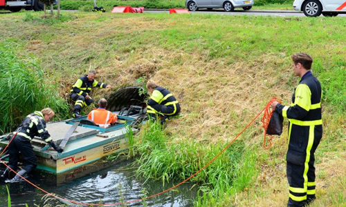 Zoetermeer – Donderdag heeft er een baggerboot vastgezeten in een duiker aan de Akkerdreef in Zoetermeer. De man was met zijn vaartuig in een sloot aan het werk toen die met zijn boot vast kwam te zitten in een tunnel wat onder de weg doorloopt. De brandweerlieden van kazerne Stadshart zijn met waadpakken te water gegaan om boot weer uit de duiker te kunnen trekken. Nadat alle spullen weer waren schoongespoten kon de brandweer weer terug naar de kazerne.