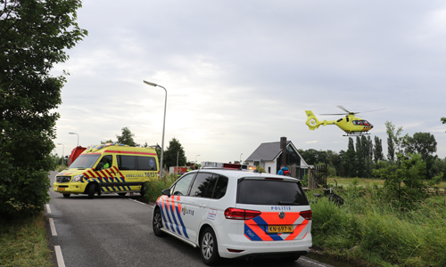 Reeuwijk – Donderdagochtend werden de hulpdiensten gealarmeerd voor een ongeval op de Zwarteweg in Reeuwijk. Ter plaatse had er een ongeval plaatsgevonden tussen een scooter en een vrachtwagen, de scooter was achterop een vrachtwagen gereden. De traumahelikopter uit Rotterdam landde op een bouwkavel naast het incident. Waarna de MMT-arts de ambulancedienst heeft ondersteund bij de behandeling van het slachtoffer. Nadat het slachtoffer stabiel was werd deze met A2 (Zonder Spoed) vervoerd naar een ziekenhuis in Rotterdam. Ten tijde van het incident was de Zwarteweg, tussen de Bloemendaalseweg en Waddinxveen afgesloten voor gemotoriseerd verkeer. Fietsers mochten hun weg op de naastgelegen fietspad wel vervolgen.
