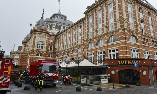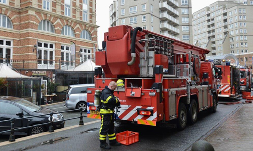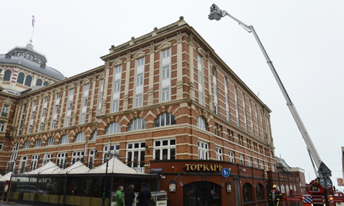 Den Haag – Vanmiddag is omstreeks half drie brand ontstaan in een horecagelegenheid onder de noordvleugel van het Kurhaus hotel aan het Gevers Deynootplein. Een medewerkster van het hotel moest voor nader onderzoek naar het ziekenhuis. De alarmcentrale ontving vanmiddag meldingen over flinke rookontwikkeling op het dak van het Kurhaus hotel. Op grond van deze meldingen en live camerabeelden is direct opgeschaald en zijn extra brandweerenheden gealarmeerd. Bij aankomst van de eerste blusvoertuigen is in verband met ontruiming en de aard van het gebouw besloten om nog verder op te schalen tot “zeer grote brand”. Er bleek brand te zijn ontstaan in een frituur-unit en in een deel van het rookafvoerkanaal van de horecagelegenheid op de begane grond direct onder de noordvleugel van het hotel. Via de sprinkler-installatie en een inzet van de brandweer is de brand geblust. De brandweer heeft de frituur-unit naar buiten gebracht. De brandweer is nog geruime tijd bezig geweest met de (na-)controle van het rookafvoerkanaal. Dit bleek behoorlijk aangetast door de hitte en rook die bij de brand is vrijgekomen. Even na drie uur was de situatie onder controle. Na ventilatie van de noordvleugel van het hotel en nadat uit metingen bleek dat de situatie binnen veilig was, is het hotel aan het eind van de middag weer vrijgegeven. In de horecagelegenheid is sprake van brand-, rook en waterschade. Ook in het hotel is sprake van rookschade. Verder heeft de brandweer op verschillende plaatsen in het hotel wanden open moeten breken om het rookafvoerkanaal te kunnen controleren. De bhv-organisatie heeft het hotel snel en op een adequate wijze weten te ontruimen. Gasten zijn in eerste instantie bij verschillende strandtenten en nabijgelegen horecagelegenheden opgevangen. Later zijn de gasten gezamelijk in het Circustheater opgevangen. Uiteindelijk zijn de gasten ondergebracht in het zuidelijke deel van het hotel en kunnen zij de nacht in het hotel doorbrengen. Een van de medewerksters van het hotel heeft rook ingeademd en is voor controle door de ambulancedienst naar het ziekenhuis gebracht. Er deden zich verder geen persoonlijke ongelukken voor.