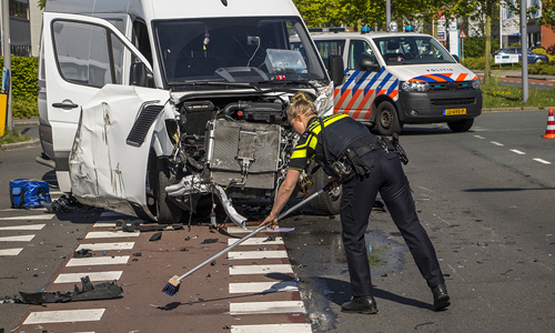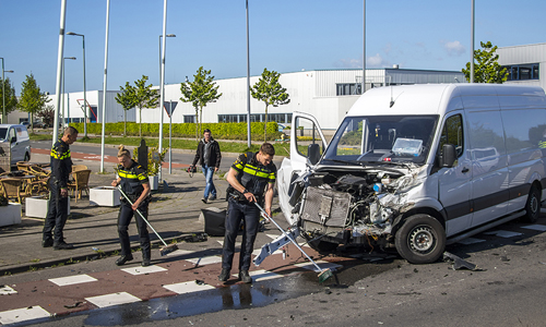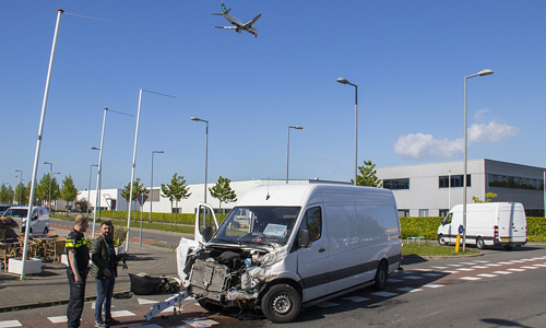 Rotterdam – Op de kruising Cairostraat met de Sydneystraat in de Spaanse-Polder heeft maandagmiddag een aanrijding plaatsgevonden. Een bestelbus van DHL botste na een voorrangsfout op een kruisende vrachtwagen. De bestelbus liep zware schade op door de aanrijding. De bestuurder is door ambulancepersoneel naar het ziekenhuis gebracht. Een berger heeft de bus geborgen.