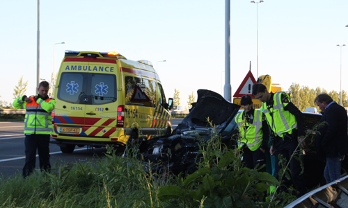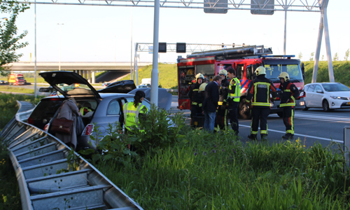Moordrecht – De hulpdiensten werden maandagavond 8 mei gealarmeerd voor een ongeval op de A20 (Richting Rotterdam) bij Moordrecht. Ter plaatse had er een ongeval plaatsgevonden tussen twee personenauto’s. De brandweer werd gealarmeerd voor een voertuigbrand, maar hier bleek uit eindelijk geen sprake van en heeft geholpen met verschillende hand en span diensten. De gealarmeerde ambulancedienst heeft twee inzittende gecontroleerd op eventueel letsel, uiteindelijk is er niemand vervoerd naar het ziekenhuis. De politie heeft van beide bestuurders een blaastest afgekomen, beide bestuurders hadden niet gedronken. Ten tijden van het incident was de oprit afgesloten voor al het verkeer, het overige verkeer ondervond hier veel hinder van. De vangrail is door de aanrijding flink beschadigd en zal gerepareerd moeten worden. Een bergingsbedrijf is ter plaatse gekomen om de voertuigen te bergen.