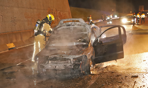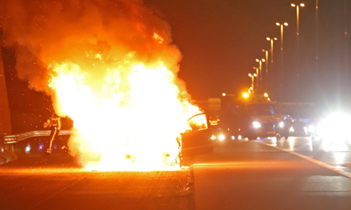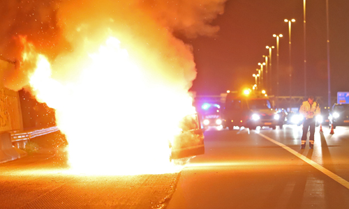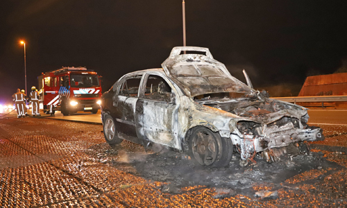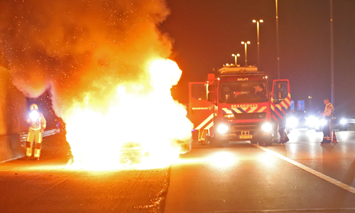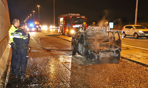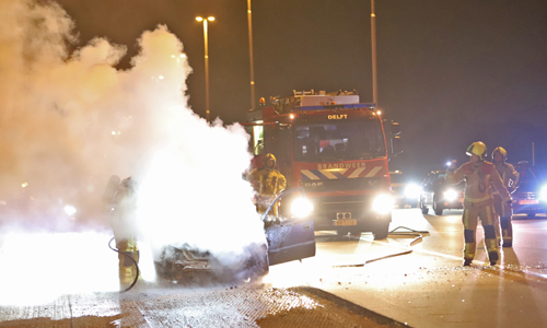Schipluiden – Zaterdagavond 8 September is er op de A4 bij Schipluiden een voertuig volledig uitgebrand. Dit gebeurde net na de oprit bij de Kruithuisweg richting Den Haag / Amsterdam. De bestuurder merkte de brand optijd op en parkeerde zijn voertuig op de vluchtstrook. Toen het voertuig eenmaal stilstond sloegen de vlammen uit de motorkap. Direct belde de eigenaar 112. Meerdere politie-eenheden, de brandweer van Delft en een ambulance kwamen met spoed ter plaatse. De politie sloot 2 rijbanen af, hierdoor moest het verkeer stapvoets langs het incident. De brandweer is bij aankomst direct begonnen met blussen. Een ambulance kwam ter plaatse voor de bestuurder van de auto, deze is in de ambulance nagekeken maar hoefde niet vervoerd te worden. Een berger gaat het voertuig bergen. Door het incident was er flinke verkeershinder.
