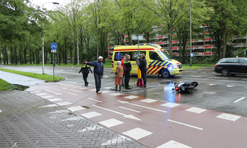 Delft – Op de Voorhofdreef met het Bosboom-Toussaintplein in Delft heeft vrijdagochtend een aanrijding plaatsgevonden tussen een auto en een brommer. Hierbij raakte de brommerrijder licht gewond. Al snel kwam de politie en een ambulance ter plaatse. Het slachtoffer werd nagekeken in de ambulance. Wat de oorzaak is van de aanrijding is onbekend.