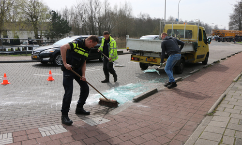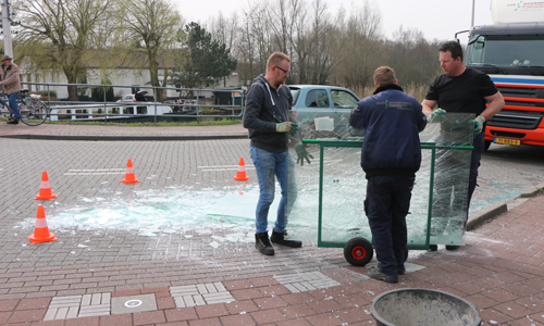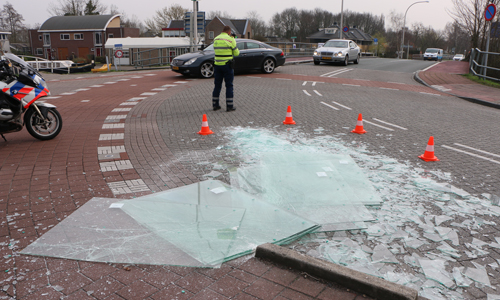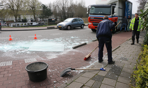Maasland – Maandagmiddag 9 april is een glaszetter een tiental glasplaten verloren in de bocht van de Kerkweg met de Oude Veiling. Door de val van de glasplaten lag een gedeelte van het wegdek vol met glas. De politie regelde het verkeer terwijl de gemeente en een medewerker van het glasbedrijf het glas hebben opgeruimd. Helaas brachten vorige week de scherven geen geluk voor de desbetreffende medewerker van de glashandel. Toen overkwam hem precies het zelfde als nu..