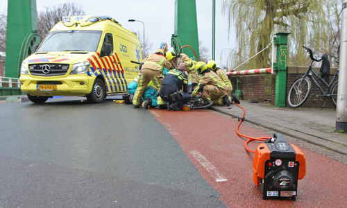 Delft – Maandagochtend 9 april is er een man gewond geraakt bij een bizar ongeval met een pedelec (een fiets die 45 km/u kan). De man wilde met zijn fiets een bocht maken toen hij hard ten val kwam. Door de val kwam de man met zijn bovenbeen vast te zitten in het stuur van de fiets. De brandweer moest met spoed ter plaatse komen om de man te bevrijden. Het koste de brandweer enige moeite om het stuur veilig te verwijderen. Nadat dit gelukt was is de man met spoed (A1) vervoerd naar het Westeinde-ziekenhuis in Den Haag.