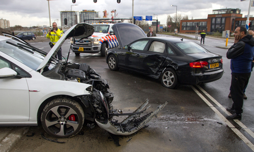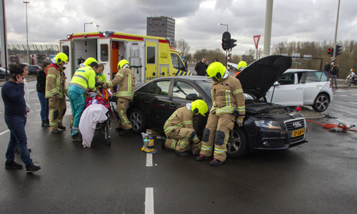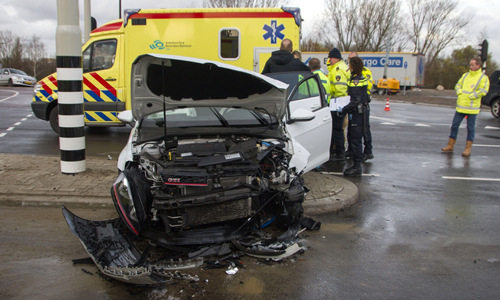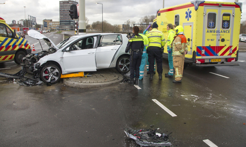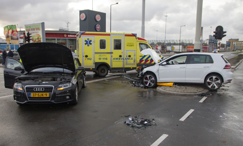 Vlaardingen – Op de kruising Mr. L.A. Kesperweg – Schiedamsedijk heeft zaterdagmiddag een aanrijding plaats gevonden waarbij twee personen gewond raakte. Twee auto’s kwamen op de kruising hard met elkaar in botsing. De brandweer, twee ambulances en diverse politie voertuigen kwamen met spoed ter plaatse. Met behulp van de verpleegkundige is een van de inzittenden voorzichtig uit het voertuig geholpen. De kruising was gestremd voor al het verkeer komende vanuit de richting Schiedam. De politie zal een onderzoek doen naar de toedracht van het ongeval. De kruising is beveiligd met stoplichten en onlangs geopend na een grondige herinrichting.