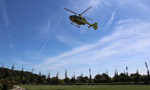‘s-Gravenzande – Hulpdiensten werden zondagochtend 9 juli omstreeks half twaalf gealarmeerd voor een medische noodsituatie aan de Prinses Beatrixstraat in ‘s-Gravenzande. Meteen na de melding zijn twee ambulances, meerdere politie-eenheden en het Mobiel Medisch Team met de traumahelikopter ter plaatse gegaan. De helikopter landde in een parkje langs de Leeuweriklaan. Het MMT heeft het ambulancepersoneel geassisteerd waarna het slachtoffer met spoed naar het ziekenhuis is vervoerd. De arts van het MMT is niet meegereden en de helikopter kon retour naar Rotterdam.