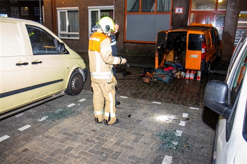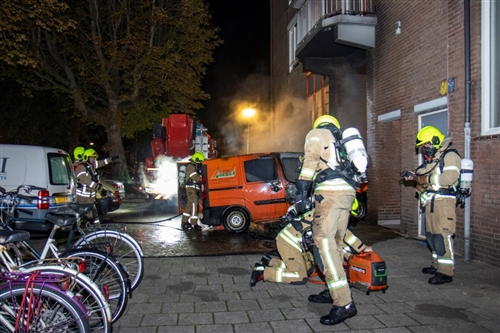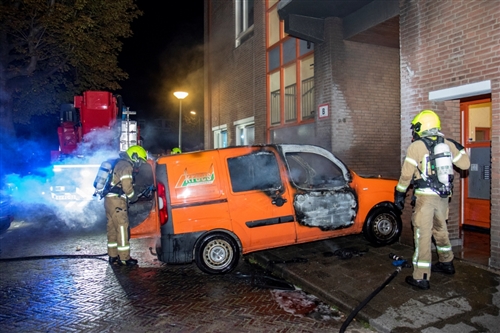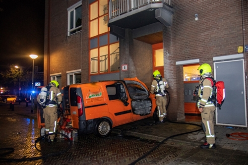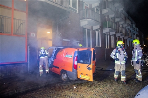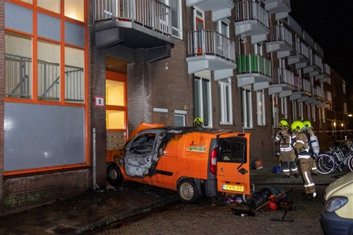 Schiedam – In de nacht van maandag op dinsdag is in de Oude Maasstraat in Schiedam een bestelauto in brand gevlogen en tegen een gebouw tot stilstand gekomen. Aan de hand van de binnengekomen meldingen en de rookontwikkeling heeft de brandweer vrijwel direct opgeschaald naar Middelbrand. Een ambulance kwam ter plaatse, maar er raakte niemand gewond. De politie had de omgeving ruim afgezet.