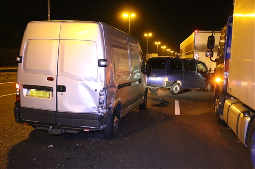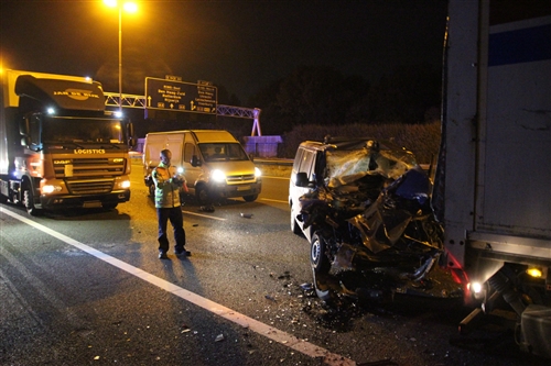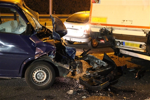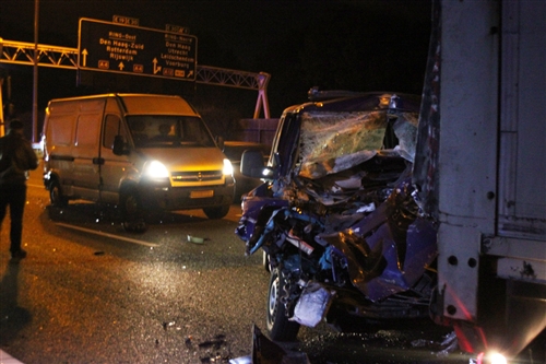 Leidschendam – In de nacht van maandag op dinsdag heeft er op de A4 richting Leiden een zwaar ongeval plaatsgevonden. Een busje kwam tijdens het invoegen in botsing met een ander busje en een vrachtwagen, waarna deze nogmaals tegen een andere vrachtwagen botste. Een inzittende werd door ambulancepersoneel gecontroleerd, waarna hij met spoed naar het ziekenhuis is vervoerd. De politie doet onderzoek naar de oorzaak van het ongeluk.