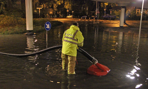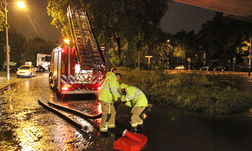 Rijswijk – De brandweer werd in de nacht van vrijdag op zaterdag opgeroepen om naar de de Hoornbrug in Rijswijk te gaan. Hier was het weggedeelte onder de brug vol komende te staan met water. Dit kwam door de flinke regenbui die over de gehele regio trok. Doormiddel van een pomp heeft de brandweer de weg leeg kunnen pompen.