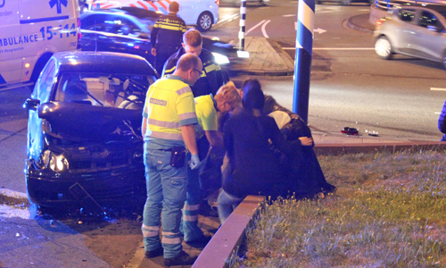 Den Haag – Op het Schenkviaduct met de Prinses Beatrixlaan in Den Haag heeft zaterdagavond een forse aanrijding plaatsgevonden tussen twee personenauto’s. Hierbij raakte meerderen personen gewond. Door nog onbekende oorzaak kwamen beide voertuigen in botsing met elkaar midden op het kruispunt. Alle inzittende van het voertuig konden zelfstandig de voertuigen verlaten. Het ambulance personeel keek meerdere mensen na. Twee hiervan moesten na controle mee naar het ziekenhuis. De verkeerspolitie kwam ter plaatse voor verder onderzoek.