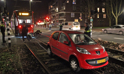 Den Haag – Zondagavond 18 december heeft tramlijn 2 forse vertraging opgelopen door een automobiliste die het spoor op was gereden tussen de haltes Burgemeester Hovylaan en Buitentuinen. Gisteravond was dit ook al het geval. De bejaarde bestuurster is opgevangen op het politiebureau terwijl agenten trachtten haar auto van het spoor te krijgen. Toen duidelijk werd dat dit niet ging door hem in zijn achteruit te zetten, is de politiekraan ingezet. Deze heeft de auto van het spoor getrokken. Berger Vreugdenhil heeft de auto meegenomen. Tram 2 reed in de richting van Leidschenhage met ruim een half uur vertraging.