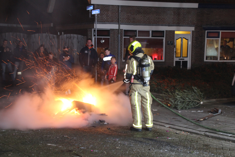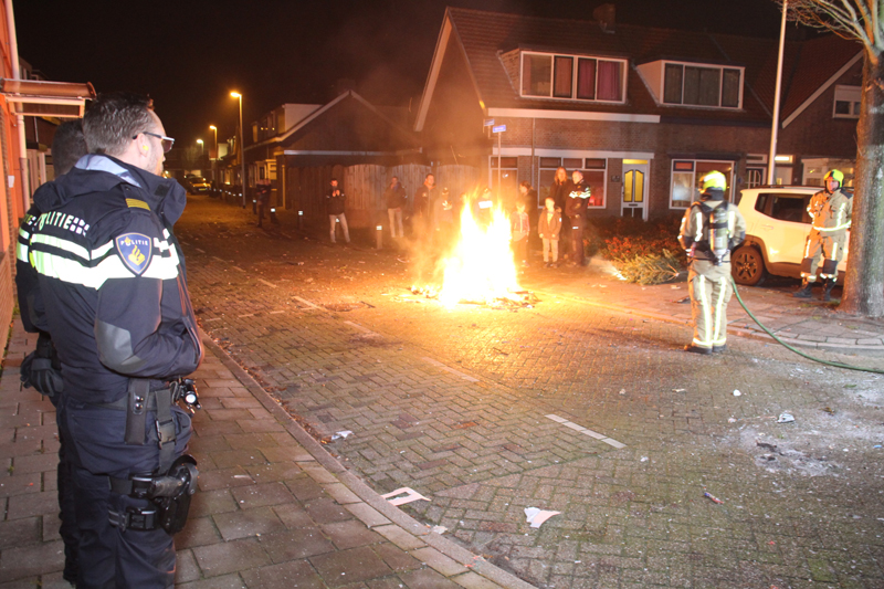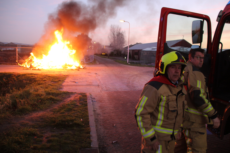 Monster – De brandweer en politie zijn vanavond ter plaatse gegaan aan de Helmstraat in Monster nadat daar een brandje was gesticht op straat. De brandweer heeft onder toeziend oog van de politie de brand geblust.