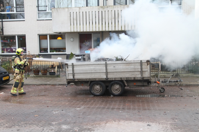 Bij aankomst van de brandweer stond er een aanhanger in de brand. De brandweer is direct begonnen met het blussen van het vuur. Wat de exacte oorzaak is van de brand is niet bekend.